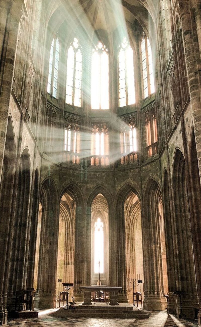 L’église abbatiale se dresse au sommet du Mont-Saint-Michel et domine les alentours depuis le Moyen Âge. Édifiée entre le XIe et le XVIe siècle, elle témoigne de l’évolution architecturale de l’abbaye. Ses arches gothiques, ses chapelles latérales et son chœur lumineux invitent à la contemplation. Dédiée à l’archange saint Michel, elle demeure aujourd’hui un lieu de recueillement pour les visiteurs. Vous apprécierez ses proportions majestueuses et ses détails sculpturaux.