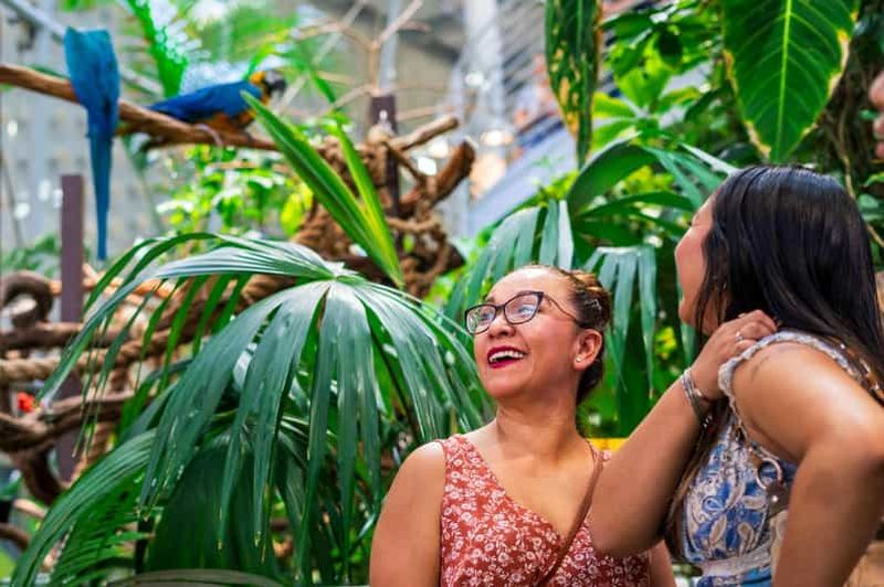 La Forêt tropicale, inaugurée en 2008, est un écosystème vivant sur quatre niveaux, recréant la chaleur et l’humidité d’une jungle dense. Vous y apercevrez des papillons colorés virevoltant librement, des oiseaux exotiques et même des grenouilles vénéneuses. Les couloirs vitrés offrent une perspective fascinante sur chaque étage. La température y est maintenue à environ 27 °C pour préserver la biodiversité. Cette expérience immersive vous transporte instantanément sous la canopée amazonienne.