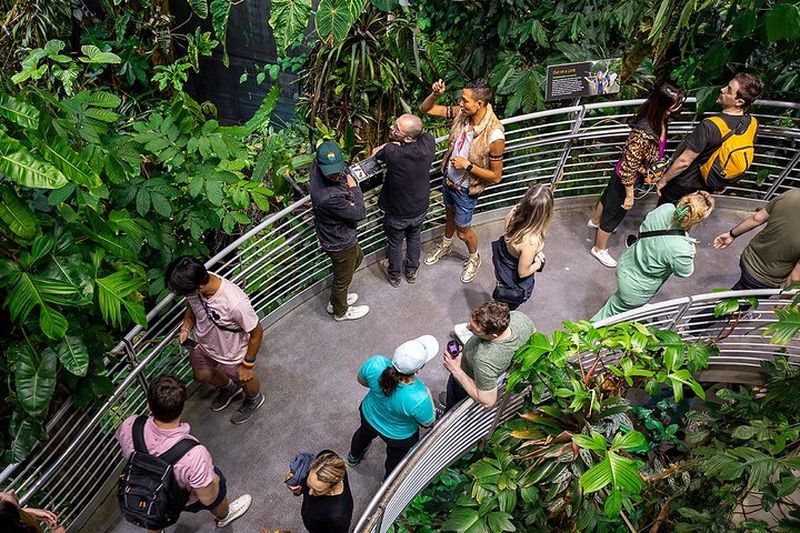 La Forêt tropicale, inaugurée en 2008, est un écosystème vivant sur quatre niveaux, recréant la chaleur et l’humidité d’une jungle dense. Vous y apercevrez des papillons colorés virevoltant librement, des oiseaux exotiques et même des grenouilles vénéneuses. Les couloirs vitrés offrent une perspective fascinante sur chaque étage. La température y est maintenue à environ 27 °C pour préserver la biodiversité. Cette expérience immersive vous transporte instantanément sous la canopée amazonienne.