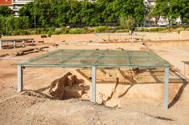 Si vous venez du quartier de Plaka, il ne vous faudra que 10 minutes à pied pour rejoindre le site (environ 700 m). Pour ceux séjournant dans le quartier plus branché de Monastiraki, comptez environ 15 minutes de marche (environ 1,2 km). Enfin, depuis le musée de l’Acropole, c’est une simple promenade de 5 minutes (environ 400 m).