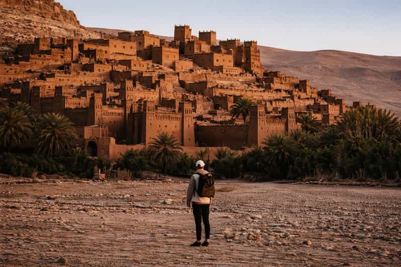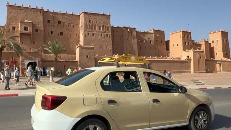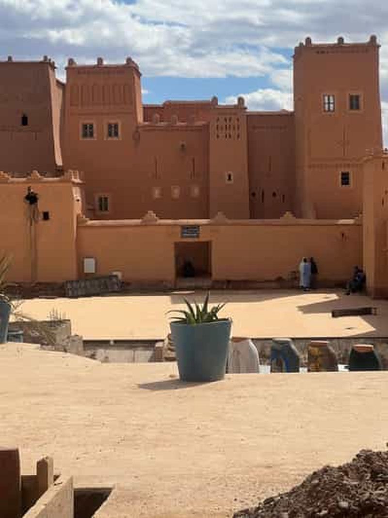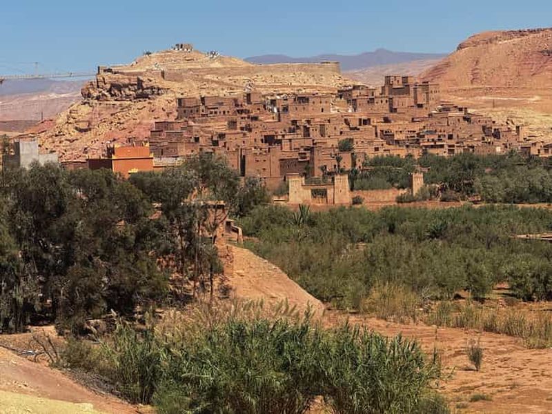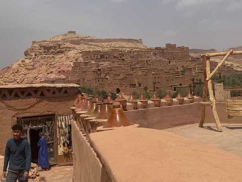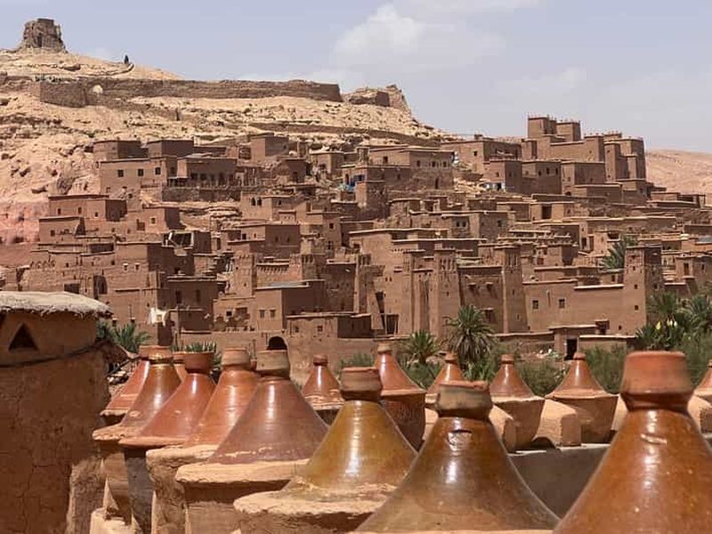 Excursion privée d'une journée : • Véhicule privé et chauffeur professionnel • Temps libre à Taourirt • Pause café • Arrêts photo panoramiques • Visite de la Kasbah d'Aït-ben-Haddou • Temps libre pour le déjeuner • Guide de la région privé • Studios de cinéma (billet inclus) Retour à Marrakech