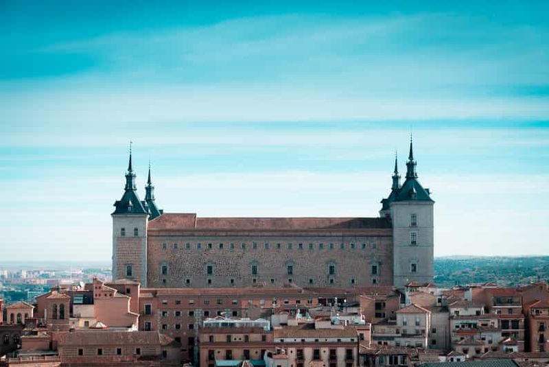Situé au cœur de la vieille ville de Tolède, l’Alcázar de Tolède est accessible facilement à pied depuis plusieurs points d’intérêt clés. Depuis la Plaza de Zocodover, il vous suffit de marcher environ 5 minutes en montant légèrement pour atteindre ce monument emblématique. Le quartier juif, avec sa Synagogue de Santa María La Blanca, se trouve à environ 15 minutes à pied, offrant une belle promenade à travers les rues pittoresques. Pour ceux qui arrivent à Tolède en train, la gare est située à environ 2 km, soit une agréable marche de 25 minutes en traversant le Pont de Alcántara.