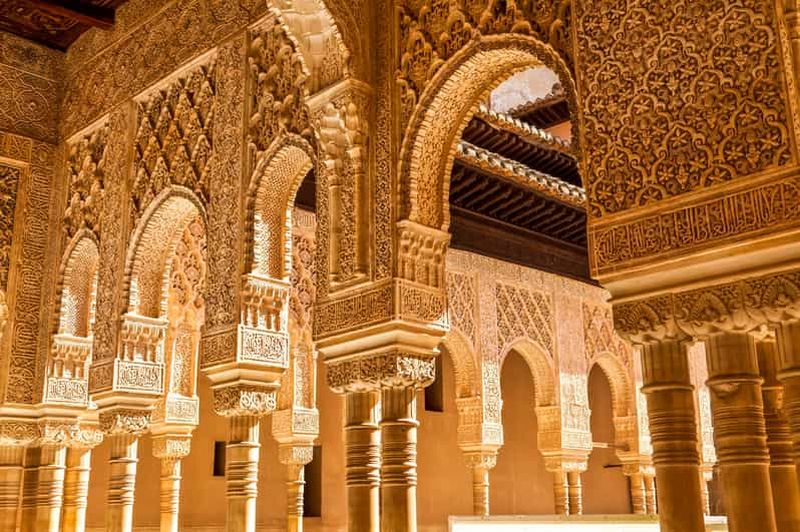 Ce hall légendaire, connu pour son plafond étoilé et ses motifs géométriques, est imprégné de mystère. Associé à une tragique légende, il suscite l’imaginaire des visiteurs. Les ornements en stuc et les riches décorations murales illustrent la maîtrise architecturale nasride. C’est un arrêt incontournable pour comprendre le symbolisme et la mythologie de l’Alhambra.