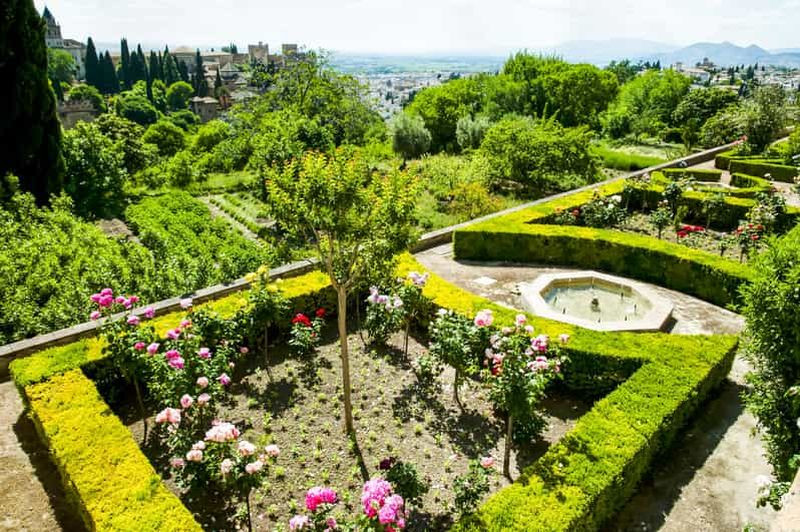 Le Généralife était la résidence d’été des sultans nasrides. Connus pour ses magnifiques jardins, il offre une vue imprenable sur la Sierra Nevada et Grenade. Les jardins en terrasse, avec leurs jeux d’eau et ombrages, sont alimentés par des systèmes d’irrigation particulièrement sophistiqués pour l’époque, témoignant de la haute technicité nasride et de l’importance de l’eau dans la culture andalouse. C’est un lieu de sérénité et de beauté, idéal pour une pause lors de votre visite.
