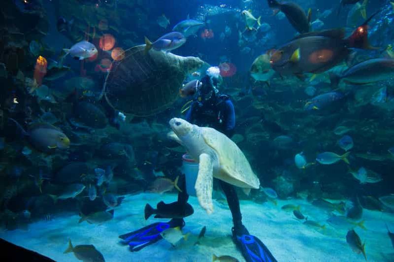 Terminez l’exploration par l’Aquatheatre, scène aquatique pour admirer des plongeurs interagir avec différentes espèces. Inauguré en 2008, cet espace accueille des démonstrations de plongée éducatives, permettant d’observer de près raies, tortues et de grands prédateurs. Les experts commentent leurs gestes et partagent des informations sur la biologie marine.