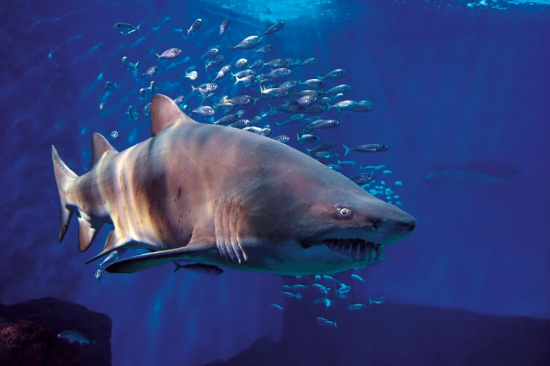Le bassin principal, profond de neuf mètres, figure parmi les plus profonds d’Europe et offre un véritable spectacle de la faune marine. Vous y observerez notamment des requins-tigres des sables évoluant dans cet environnement immersif.
