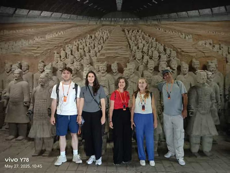 Comprend les billets d'entrée et les services d'un guide anglophone sur place. Lieu de rendez-vous : la grande statue de l'empereur Qinshihuang dans le parking du musée de l'armée de terre cuite. Nous vous enverrons une photo du lieu de rendez-vous une fois que vous aurez réservé la visite.