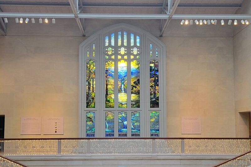 Réalisés en 1977, les vitraux de Marc Chagall, intitulés « Les Quatre Saisons », sont installés à l’extérieur du musée, dans la cour de l’Art Institute. Inspirée par sa vision poétique, cette œuvre monumentale se compose de panneaux en verre coloré, représentant la vie et la nature. Les nuances lumineuses et l’atmosphère onirique évoquent l’univers d’un artiste franco-russe qui cherchait à transmettre l’espoir et la beauté à travers son art.