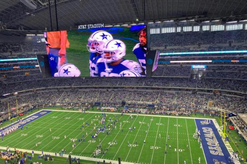 La pelouse du Stade des Dallas Cowboys (AT&T Stadium), équipée d’une surface moderne, est au cœur de l’action depuis son ouverture en 2009. Elle accueille des matchs de NFL, des concerts et divers événements sportifs. Le célèbre écran vidéo suspendu, autrefois le plus grand du monde, offre une qualité d’affichage exceptionnelle et avoisine 600 tonnes.
