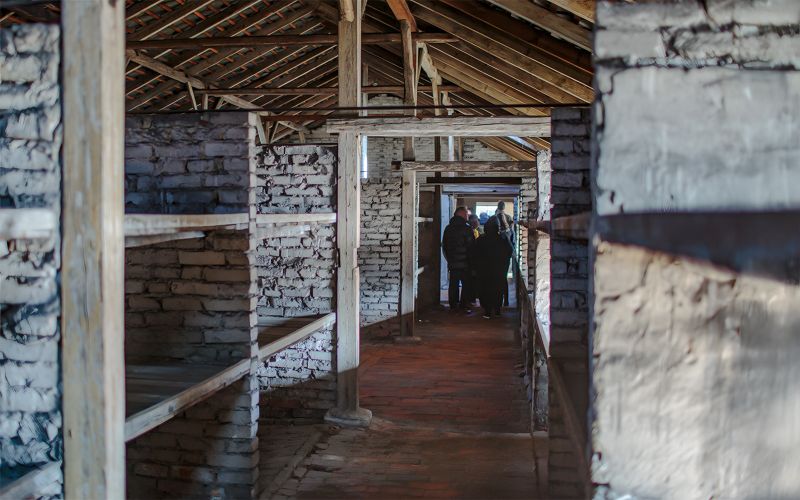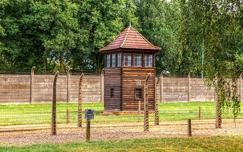 La Tour de Garde à l’entrée de Birkenau offre une vue panoramique du camp, révélant l’immensité dévastatrice de ce lieu d’horreur. En montant à la tour, les visiteurs peuvent découvrir la topographie du camp, comprendre la géographie de la terreur, et réaliser l’échelle des crimes commis ici. Cette perspective éclaire l’organisation méthodique de la destruction planifiée et permet la réflexion sur les événements qui ont marqué ce site.