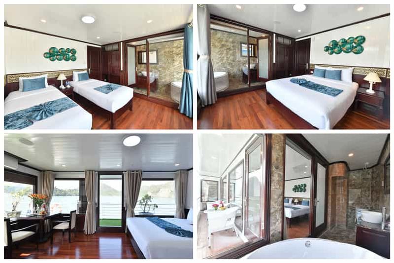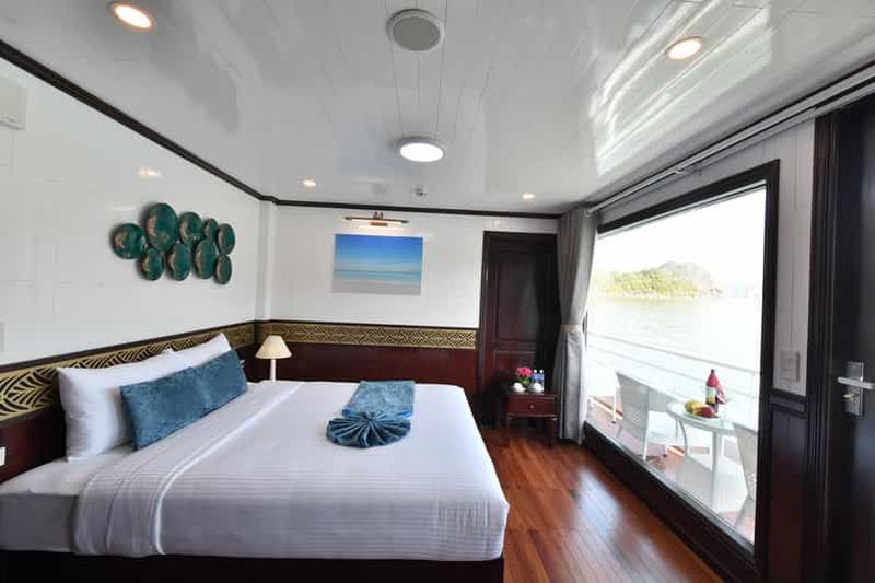 Cette option n'inclut pas le transfert depuis Hanoi. Lieu de prise en charge en charge au terminal international de Tuan Chau. Le transport jusqu'au terminal n'est pas inclus. Cabine Deluxe avec balcon privé - Cabine Jacuzzi - Premier étage