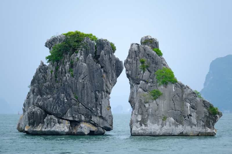 Les pitons calcaires de la Baie d’Halong, dont les célèbres Coqs de Combat, se sont formés il y a environ 500 millions d’années et sont inscrits au Patrimoine mondial de l’UNESCO depuis 1994. Leur silhouette unique, érodée par le temps et l’eau, offre un spectacle naturel grandiose. Vous aurez l’occasion de naviguer entre ces formations rocheuses, parfois coiffées de végétation, qui rendent la baie si photogénique et vraiment inoubliable.