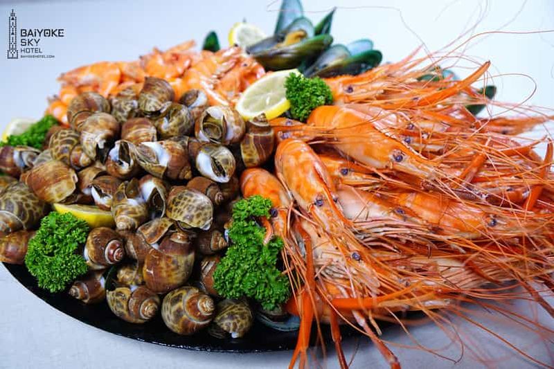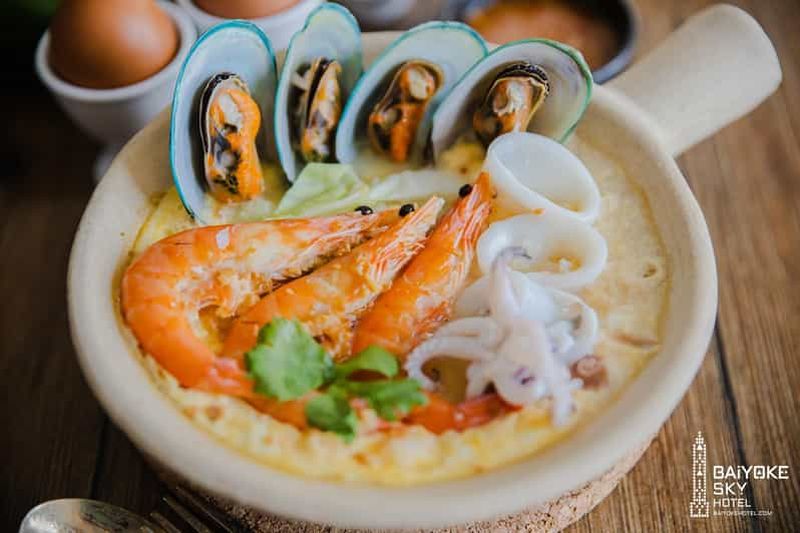 Profitez d'un déjeuner buffet à l'hôtel Baiyoke Sky de Bangkok. Savourez une variété de fruits de mer et de plats haut d...