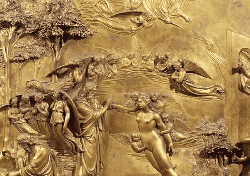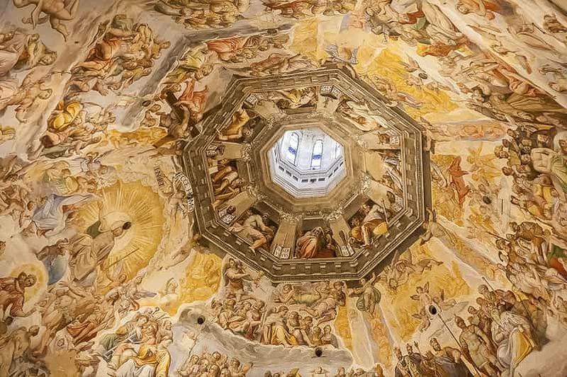 Le baptistère est réputé pour ses magnifiques portes en bronze, notamment les Portes du Paradis, réalisées par Lorenzo Ghiberti au XVe siècle. Composées de panneaux en relief représentant des récits bibliques, ces portes furent qualifiées de « Paradis » par Michel-Ange. Leur conception méticuleuse nécessita 27 ans d’efforts, jusqu’à leur achèvement en 1452. À l’intérieur, le somptueux plafond en mosaïque attire instantanément le regard grâce à ses représentations détaillées du jugement dernier, un témoignage d’une époque artistique exceptionnelle.