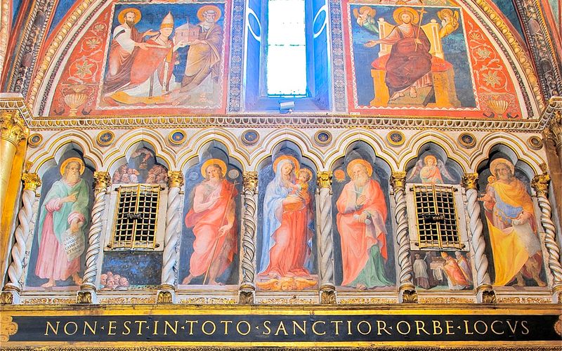 Érigé au XIVe siècle, ce ciborium gothique se dresse fièrement au-dessus du maître-autel. On raconte depuis longtemps qu’il contiendrait les têtes de saint Pierre et de saint Paul, que vous pourrez vénérer à l’intérieur. Cette présence confère à l’édifice un caractère sacré, révéré par d’innombrables fidèles à travers les âges.