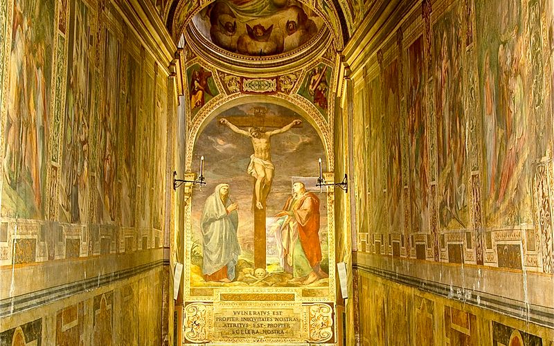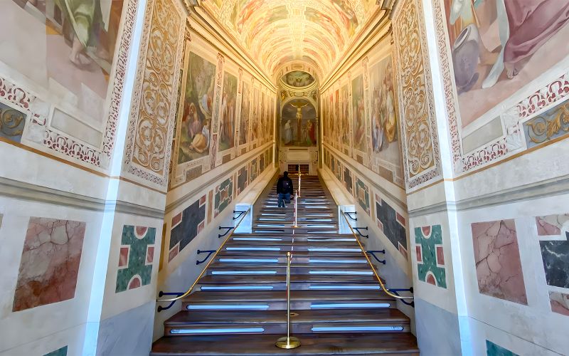 La Scala Santa, ou “Sainte Échelle”, est une série de 28 marches que la tradition catholique associe à la résidence de Ponce Pilate à Jérusalem. On dit que Jésus les gravit lors de sa Passion. De nombreux pèlerins montent ces escaliers à genoux, perpétuant un rituel de dévotion ancestral. En haut, vous trouverez le Sancta Sanctorum, chapelle privée des Papes renfermant des reliques précieuses et un rare portrait du Christ.
