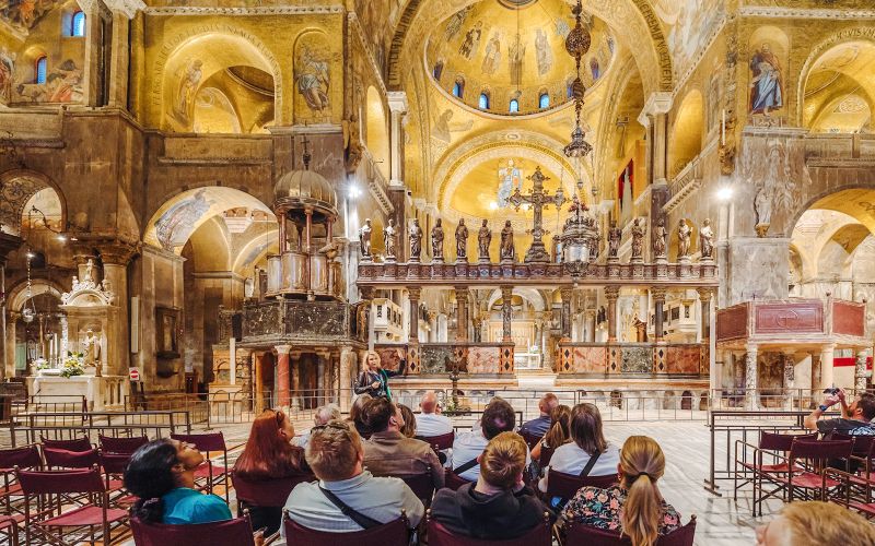 - Guide local·e anglophone - Vis guidées à pied par des spécialistes - Billet d'accès exclusif à la Basilique Saint-Marc (après la fermeture) - Casque d'écoute - Palais des Doges