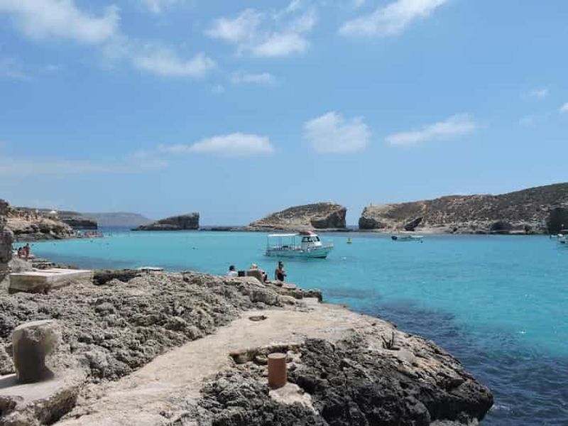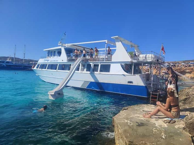 Demi-journée au lagon bleu de Comino au départ du Corinthia Beach Resort à St Julian's Un moyen idéal pour visiter le lagon bleu de Comino, aux eaux cristallines, en seulement 45 minutes ! Nous partons de notre base et naviguons le long de la côte est de Malte en passant par les îles Saint-Paul, puis nous traversons vers le lagon bleu de Comino. À Comino, vous profiterez de votre temps libre pour nager, faire du snorkeling et prendre des bains de soleil. Vous pouvez également louer des chaises longues au Blue Lagoon et y acheter de la nourriture et des boissons. Avant de prendre le chemin du retour, nous visiterons les grottes de St. Maria et nous retournerons à St George's Bay où nous arriverons vers 13h00. Veuillez noter que, conformément à une nouvelle politique gouvernementale publiée le 29 avril 2025, tous les visiteurs du Blue Lagoon doivent désormais réserver leur accès sur le site web officiel : https://blcomino.com/product/blue-lagoon/ Veuillez réserver votre créneau en conséquence Veuillez noter que les visiteurs qui ne sont pas en possession d'un laissez-passer valide ou dont les détails du laissez-passer sont incorrects ne seront pas autorisés à entrer dans le Lagon Bleu. Dans ce cas, les clients seront redirigés vers Santa Maria Bay, une autre plage située à côté du lagon bleu.