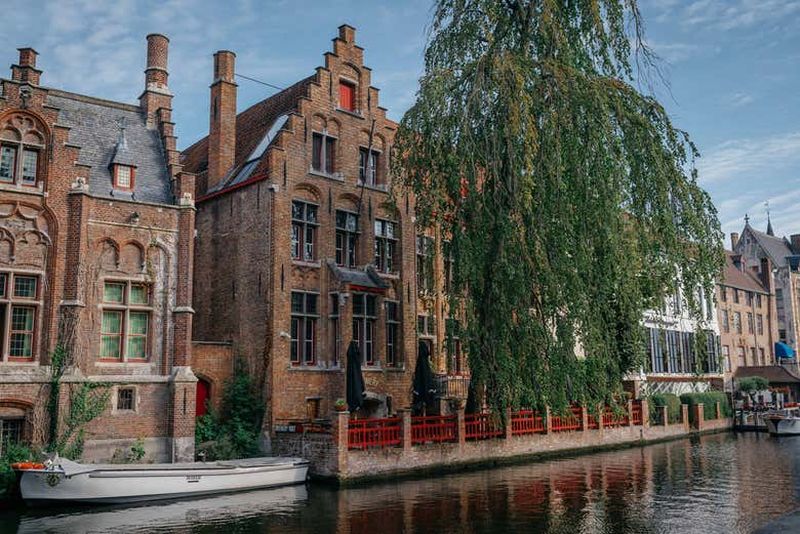Perchée au-dessus des eaux tranquilles de Bruges, la terrasse de la brasserie offre une perspective unique sur les canaux historiques. Restaurée lors des travaux de modernisation de 2017, elle dispose de tables conviviales où vous pouvez savourer une bière fraîche tout en contemplant le ballet des bateaux touristiques.