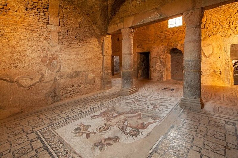 Ces habitations uniques, situées en sous-sol pour se protéger de la chaleur, témoignent du raffinement de la bourgeoisie romaine. Construite entre le IIᵉ et le IVᵉ siècle, chaque maison dévoile des mosaïques, comme la célèbre représentation de la déesse Amphitrite. La Maison de la Chasse révèle notamment des scènes de chasse spectaculaires, tandis que la Maison du Trésor et celle d’Ulysse exhibent des sols richement ornés, illustrant leur élégance d’antan.