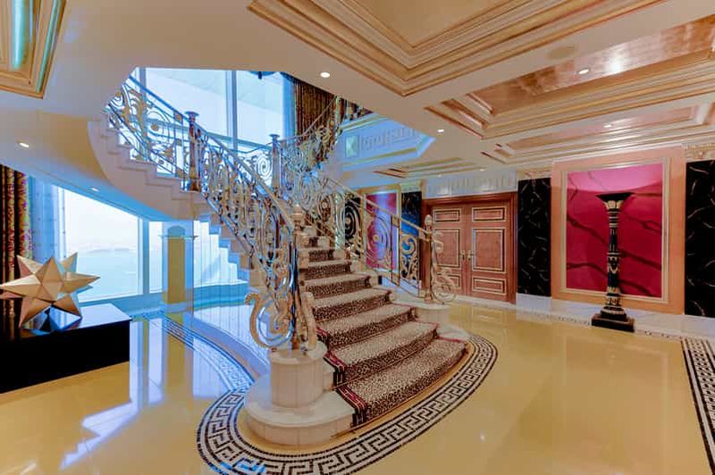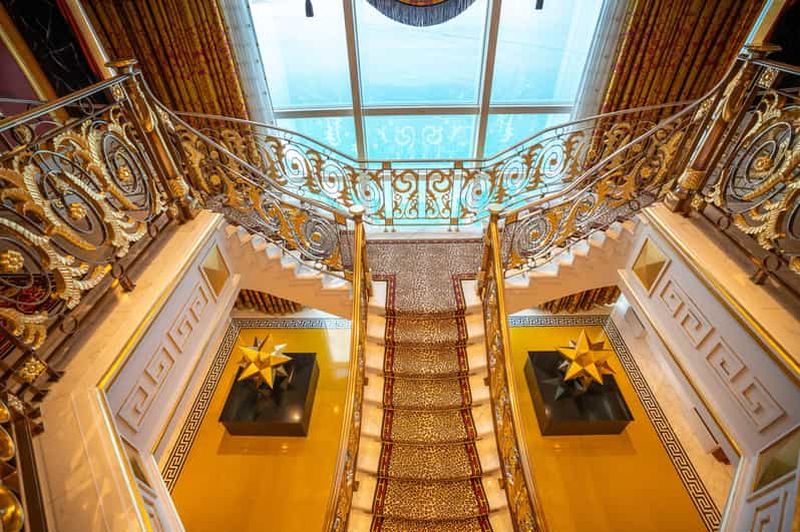 Pour l’aménagement intérieur, plus de 1 790 m² de feuilles d’or 24 carats ont été appliquées sur les murs, les colonnes et divers éléments décoratifs. Cette opulence reflète la passion de Dubaï pour le luxe et offre aux visiteurs une atmosphère unique, digne d’un palais. L’éclat de l’or anime chaque recoin.