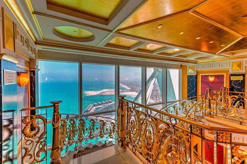 L’atrium du Burj Al Arab, culminant à environ 180 mètres, s’impose comme l’un des plus hauts au monde. Il occupe près d’un tiers de la hauteur totale de l’édifice et crée un sentiment d’espace grandiose. Ses proportions et son esthétique élégante suscitent l’émerveillement dès l’instant où vous posez le regard.