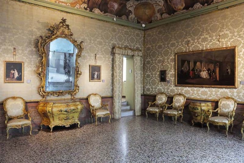 Au premier étage, les appartements d’apparat révèlent la vie quotidienne des grandes familles patriciennes. Chaque pièce, datant du XVIIIème siècle, présente un aménagement luxueux : plafonds sculptés, peintures murales et mobilier précieux. Les salons reçoivent une lumière tamisée, créant une atmosphère intimiste, tandis que les chambres se distinguent par leurs étoffes richement brodées. Vous serez fascinés par ces espaces, qui offrent un aperçu du raffinement vénitien sous la République Sérénissime.