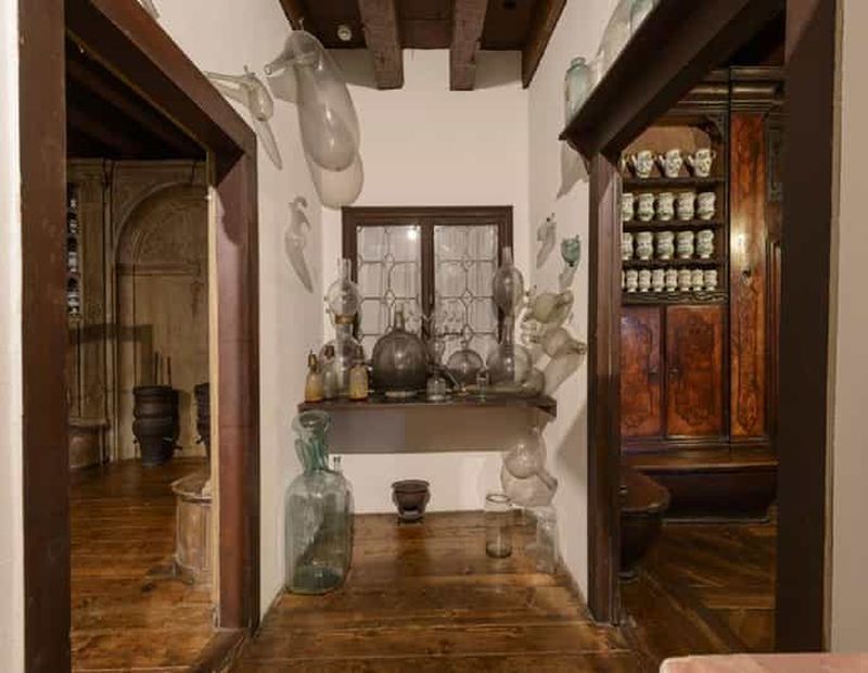 La pharmacie historique reconstituée vous plonge dans l’atmosphère médicale du XVIIIème siècle vénitien. Fidèlement réaménagée à partir d’éléments originaux, elle présente des étagères remplies de flacons, d’herbes médicinales et d’instruments d’époque. Les comptoirs en bois sculptés témoignent de l’importance accordée à l’esthétique, même dans un lieu utilitaire. Vous pourrez y découvrir l’évolution des pratiques pharmaceutiques et la manière dont les remèdes étaient préparés, vendus et administrés durant la période baroque.