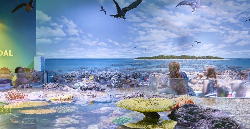 L’un des plus grands bassins de récif corallien de l’hémisphère Sud s’étend ici, permettant une immersion spectaculaire dans la biodiversité marine. À travers ses parois vitrées, vous observez poissons colorés et coraux vivants en pleine symbiose. Cette prouesse technique impressionne et sensibilise au rôle vital du récif local dans l’écosystème.