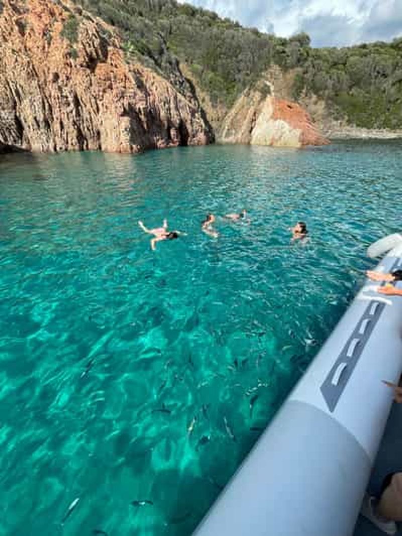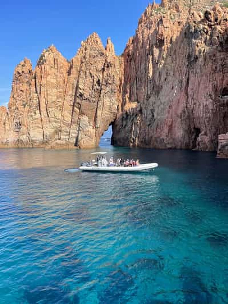 Montez à bord du Liamone, un bateau pneumatique rigide rapide de 12 places. Explorez les calanques de Piana et Capo Ross...