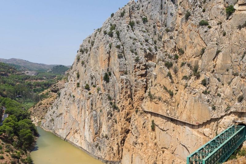 Le défilé des Gaitanes est le cœur rocheux de l’itinéraire, façonné par la rivière Guadalhorce depuis longtemps. Ses parois vertigineuses, pouvant atteindre 300 mètres de hauteur, forment l’un des canyons les plus spectaculaires d’Andalousie. Jadis, ce couloir naturel constituait un passage stratégique pour relier l’intérieur des terres au littoral. Aujourd’hui, il offre un décor grandiose, où se mêlent faune et flore endémique, faisant de cette étape une expérience naturelle inoubliable.
