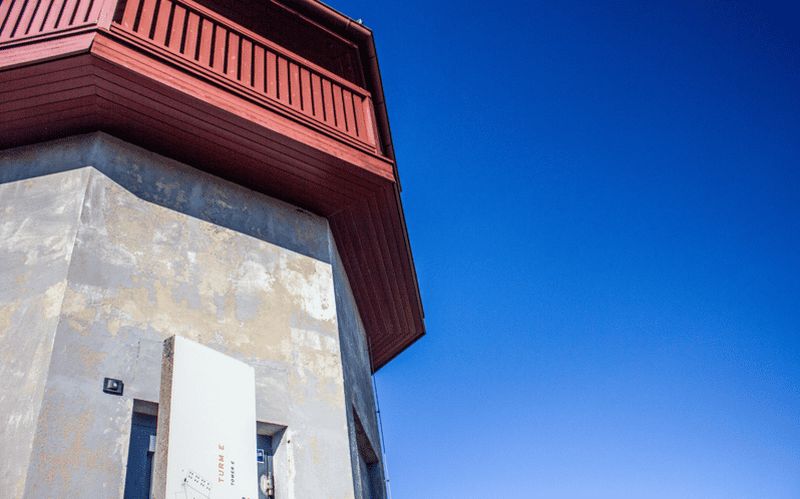 La tour de garde principale, érigée dès l’ouverture du camp, dominait l’ensemble du site pour surveiller et contrôler les détenus. Reliées par un réseau de miradors disposés autour du périmètre, ces installations étaient équipées de projecteurs et d’armes à feu. Les gardes pouvaient ainsi réagir à tout mouvement suspect.