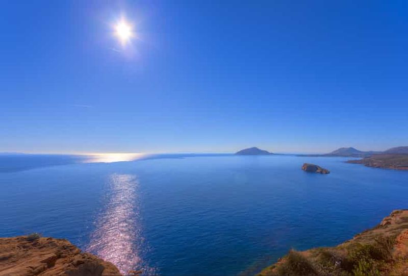 Depuis les hauteurs de la péninsule, vous profiterez d’un panorama exceptionnel embrassant la mer Égée et ses îles scintillantes. Les vents marins et la lumière dorée de la Grèce confèrent une atmosphère unique à ce point de vue. Beaucoup de voyageurs choisissent d’y capturer des photos mémorables, notamment lorsque le soleil se reflète sur les eaux. Les murets en pierre offrent d’agréables postes d’observation pour contempler l’étendue du littoral environnant.