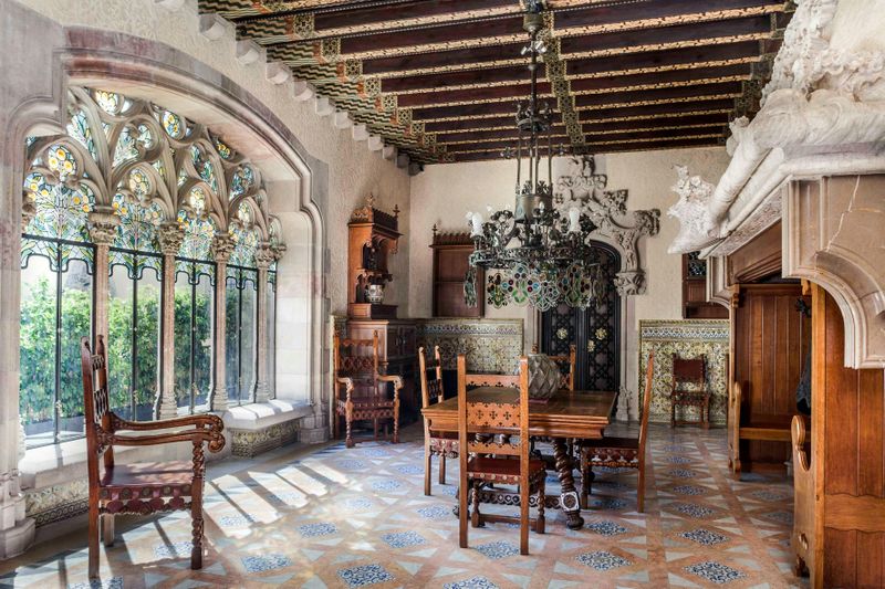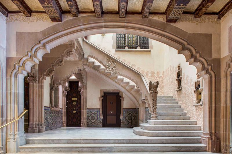 Dès l’entrée, l’escalier néogothique construit entre 1898 et 1900 impressionne par sa structure majestueuse. Pierre finement travaillée, arcs décorés et motifs inspirés du Moyen Âge composent cet espace pensé pour éblouir les visiteurs. Reflet du goût d’Antoni Amatller pour les arts décoratifs, cet escalier sert d’introduction solennelle aux espaces privés de la demeure, où se déploie toute l’élégance de l’architecture moderniste.