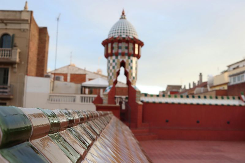 La façade polychrome exhibe fièrement des motifs orientaux et mudéjars, reflet de l’attrait barcelonais pour ces styles en vogue fin XIXe siècle. Admirez ses céramiques vives, ses arcs et ses ornements géométriques, qui révèlent la créativité sans bornes de Gaudí. Ce mélange audacieux annonce déjà l’essor artistique du modernisme catalan.