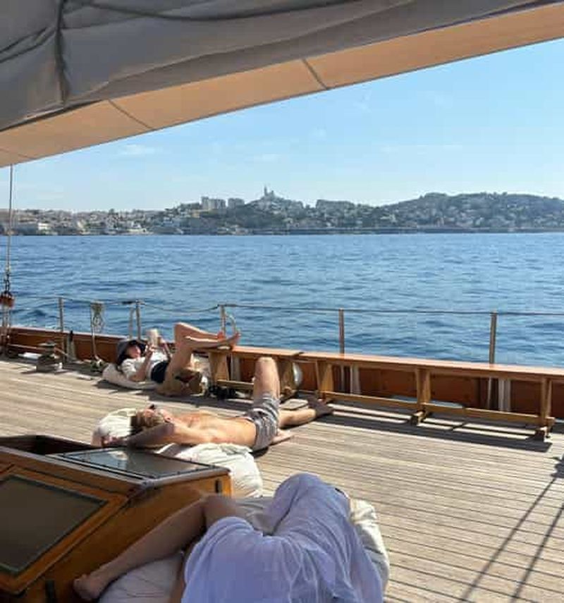 Voguez à bord d'un voilier à 2 mâts connu sous le nom de Don du Vent, lors d'une excursion au départ de Marseille avec d...