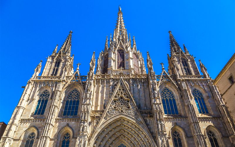 La superbe façade néogothique que vous admirez aujourd’hui fut achevée au XIXe siècle, bien après les travaux initiaux. Les architectes de l’époque souhaitaient harmoniser l’apparence générale de la Cathédrale de Barcelone avec le style gothique originel. Ce mélange d’époques rend l’ensemble particulièrement impressionnant et mérite un œil attentif du visiteur.
