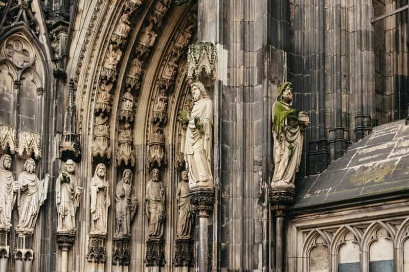 La façade gothique de la Cathédrale de Cologne, complétée en 1880, s’élève à plus de 157 mètres sous ses deux tours jumelles. Vous pourrez admirer les détails sculptés autour du portail principal, représentant des scènes bibliques et des personnages historiques. Ce style, mêlant audace architecturale et symbolisme religieux, a contribué à classer l’édifice au patrimoine mondial de l’UNESCO.