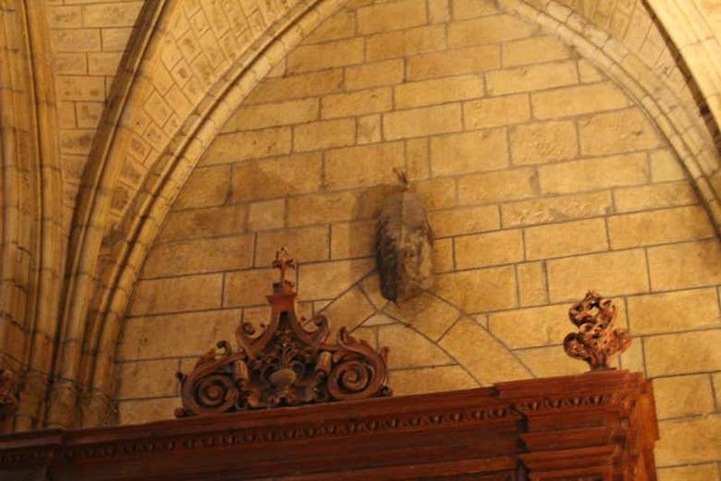 Le chœur de la cathédrale, où se réunissaient les chanoines, comporte des stalles finement sculptées du XVIe siècle. Ces sièges en bois de noyer, richement ornés de motifs végétaux et figuratifs, témoignent de l’excellence de l’artisanat local. Le travail de la perspective et des détails rend chaque stalle unique. Au centre, vous apercevrez l’autel majestueux, où se déroulent les célébrations liturgiques. L’éclairage naturel met en valeur les richesses artistiques présentes.