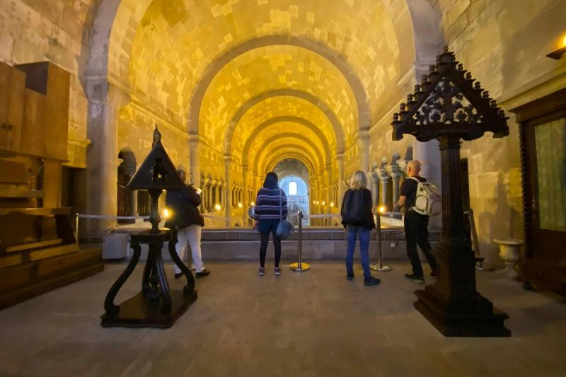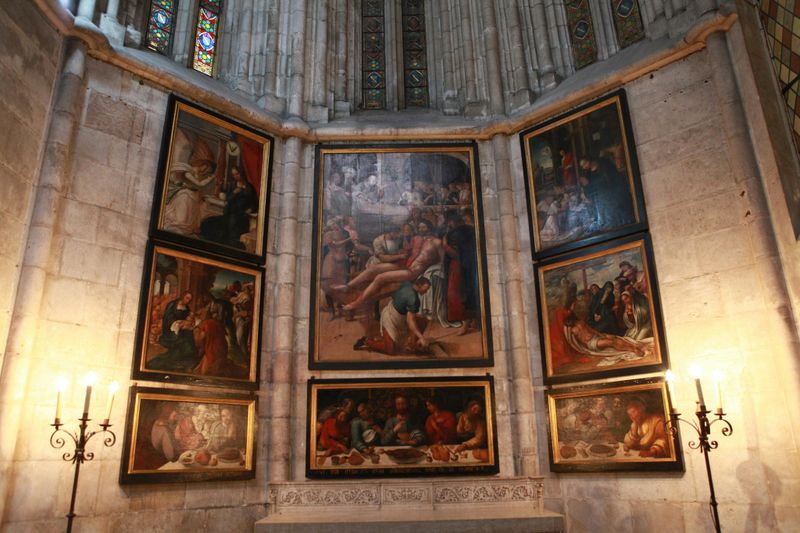 Le Trésor de la cathédrale abrite un ensemble remarquable d’objets liturgiques, notamment des calices, ostensoirs et reliquaires, dont certains datent du Moyen Âge. Vous admirerez la délicatesse de l’orfèvrerie portugaise, finement décorée de pierres précieuses. Des manuscrits enluminés, des vêtements sacerdotaux brodés d’or et des croix processionnelles complètent cette collection unique. Exposés dans une salle spécialisée, ces trésors illustrent la dévotion, le savoir-faire artisanal et la puissance ecclésiastique de l’époque.
