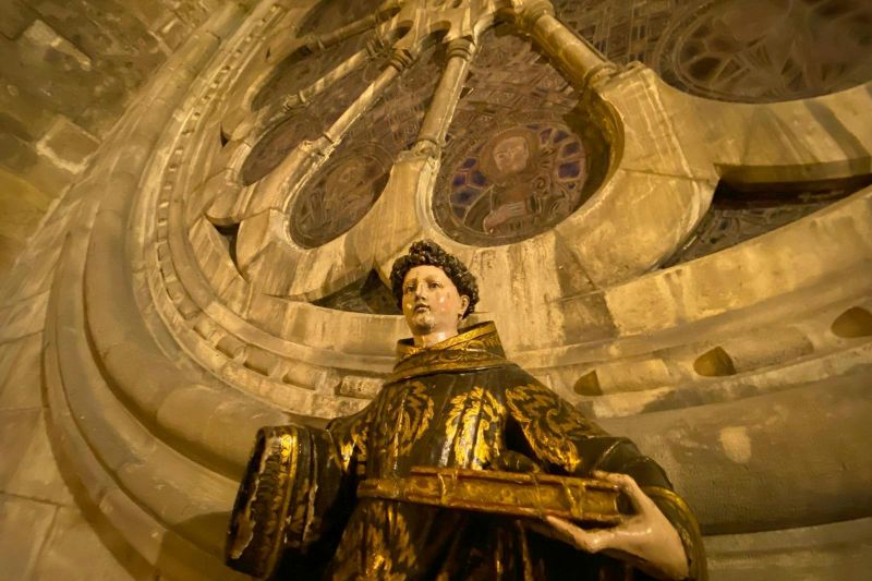 Saint Vincent, vénéré comme le saint patron de Lisbonne, repose en partie dans la cathédrale sous forme de reliques. Déplacées depuis le cap Saint-Vincent au XIIe siècle, elles sont associées à des légendes historiques et miraculeuses. Chaque année, des fidèles et des visiteurs affluent pour honorer la mémoire de ce martyr espagnol. Ses reliques, conservées dans un reliquaire ouvragé, renforcent la dimension sacrée de l’édifice et l’attachement profond des Lisboètes.