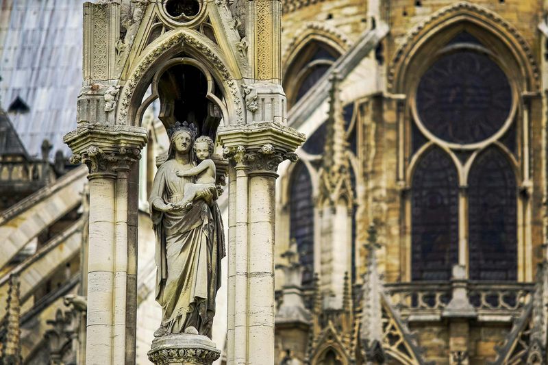 La façade occidentale, achevée au début du XIIIe siècle, présente trois portails richement ornés: le portail du Jugement Dernier, celui de la Vierge, et celui de sainte Anne. Ses arcs-boutants et ses nombreuses statues, dont la célèbre galerie des rois, illustrent toute la splendeur de l’art gothique français. Prenez le temps d’observer attentivement les scènes bibliques finement sculptées: elles racontent l’histoire sacrée et symbolisent la puissance de la foi médiévale.