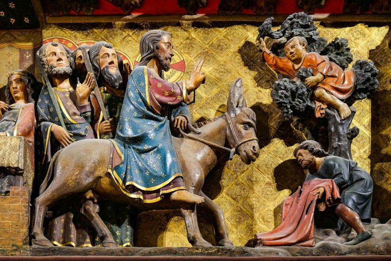 La vaste nef, soutenue par des voûtes gothiques élancées, mesure environ 130 mètres de long et offre un sentiment de grandeur saisissant. Le chœur, aménagé dès le XIIIe siècle, accueille un maître-autel entouré de stalles finement sculptées. Les chapelles latérales, chacune dédiée à un saint ou à un événement religieux, sont ornées de peintures et sculptures remarquables. Prenez le temps d’explorer ces espaces sacrés qui témoignent du foisonnement artistique médiéval.