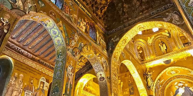 Une fois à l’intérieur, vous apprécierez les mosaïques byzantines qui recouvrent partiellement les murs et les voûtes, révélant le savoir-faire des maîtres d’ouvrage médiévaux. Datant principalement du XIIème siècle, ces ornements étincelants représentent des scènes religieuses et des figures sacrées. Les colonnes et les chapiteaux, d’inspiration romane, se mêlent harmonieusement aux influences islamiques remaniées par les Normands. Prenez le temps d’observer le détail, témoignage de la foi, de l’art sicilien.