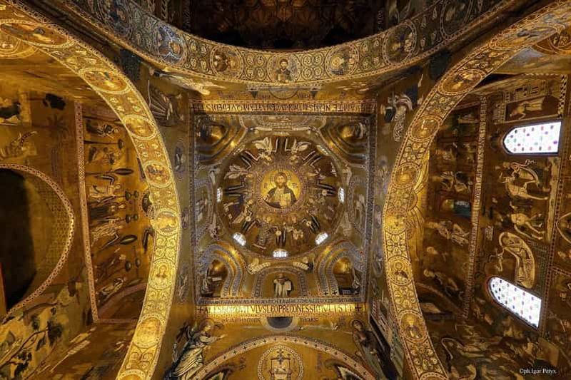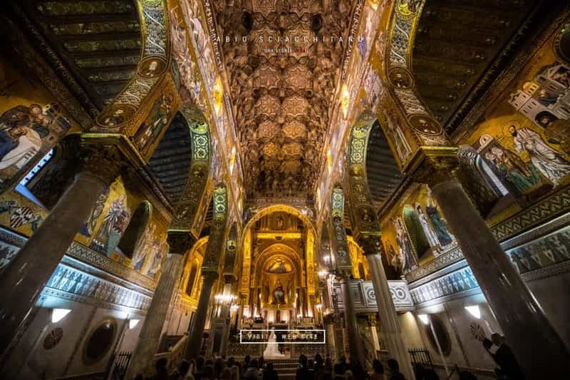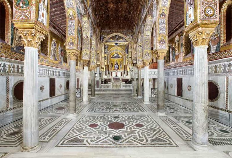 Une fois à l’intérieur, vous apprécierez les mosaïques byzantines qui recouvrent partiellement les murs et les voûtes, révélant le savoir-faire des maîtres d’ouvrage médiévaux. Datant principalement du XIIème siècle, ces ornements étincelants représentent des scènes religieuses et des figures sacrées. Les colonnes et les chapiteaux, d’inspiration romane, se mêlent harmonieusement aux influences islamiques remaniées par les Normands. Prenez le temps d’observer le détail, témoignage de la foi, de l’art sicilien.