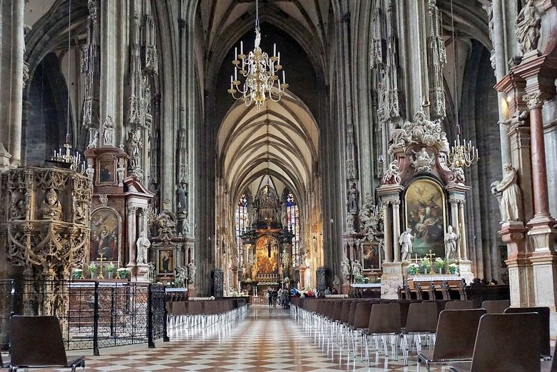 À l’intérieur, vous admirerez la chaire de prédication de style gothique flamboyant, datée du XVe siècle, ornée de détails richement sculptés. L’autel principal, baroque, fut conçu par Tobias Pock au XVIIe siècle, tandis que les chapelles latérales offrent des exemples saisissants d’art et de dévotion. Ne manquez pas le tombeau de l’empereur Frédéric III, réalisé en marbre rouge, expression prestigieuse du pouvoir impérial et témoin majeur de l’histoire autrichienne.