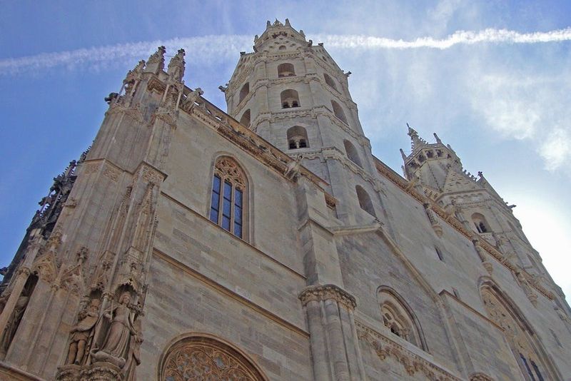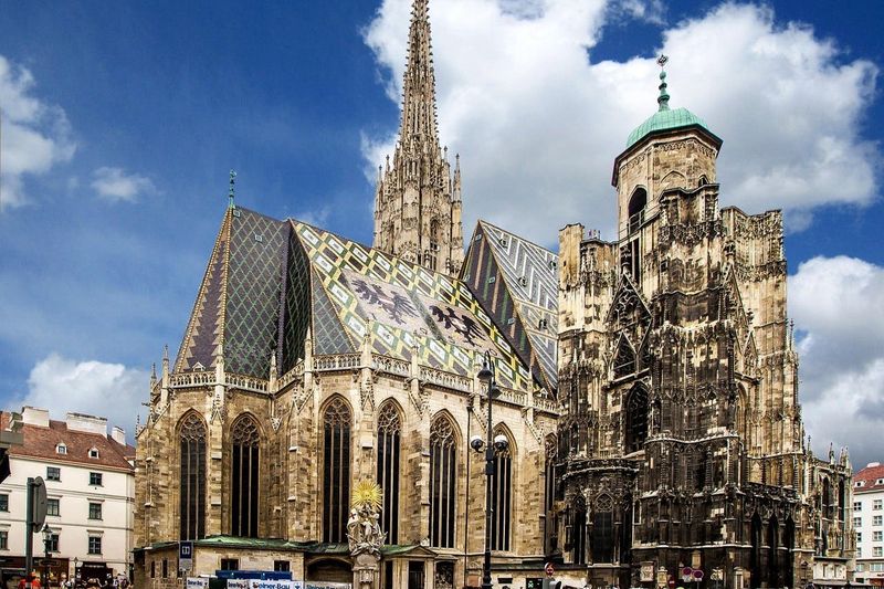 La silhouette de la cathédrale, bâtie entre les XIIIe et XVe siècles, témoigne d’un style gothique remarquable. Sa façade occidentale, ornée de gargouilles sculptées, évoque la grandeur médiévale. Le toit de tuiles colorées, disposées en motifs géométriques, en fait un repère visuel unique dans le skyline de Vienne. Les détails architecturaux évoquent l’histoire mouvementée de l’édifice, ayant survécu à plusieurs incendies et restaurations, soulignant la magnificence de ce joyau religieux.