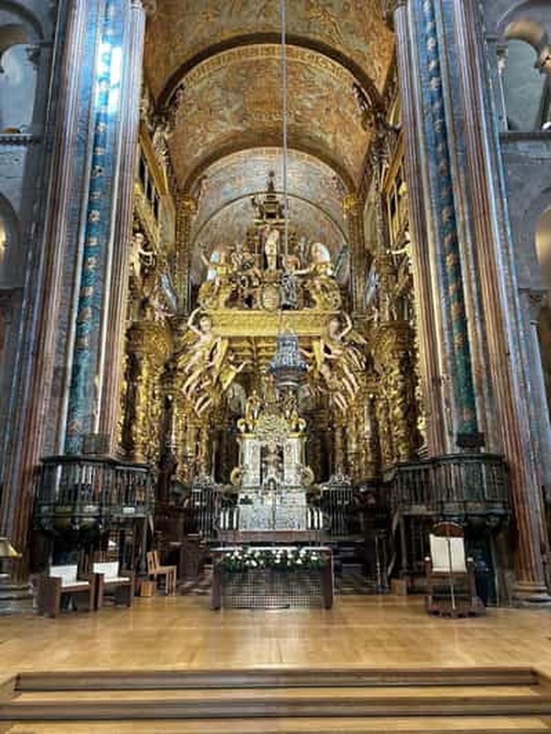 La Chapelle Majeure, érigée à la période gothique tardive et redessinée au XVIe siècle, se trouve au cœur de la basilique. Véritable foyer spirituel, elle abrite le maître-autel richement décoré, dédié à l’apôtre saint Jacques. On y aperçoit également un baldaquin et des reliefs dorés qui soulignent l’ampleur de la dévotion populaire. Au fil des siècles, ce sanctuaire a su préserver la ferveur des pèlerins venus célébrer le saint patron.