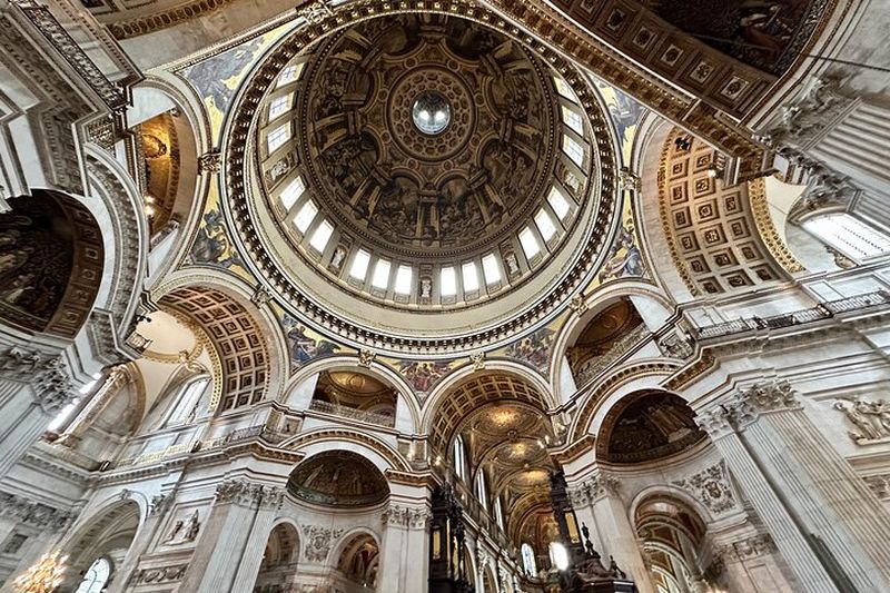 La coupole de la Cathédrale Saint-Paul est, en réalité, formée de trois dômes distincts : une coupole intérieure, une structure conique au centre et la coupole extérieure. Cette architecture ingénieuse offre un équilibre parfait entre esthétique et stabilité, tout en permettant à la lumière de circuler harmonieusement à travers l’édifice.