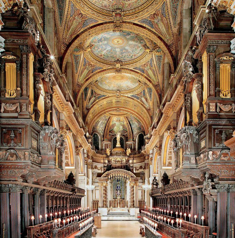 La coupole de la Cathédrale Saint-Paul est, en réalité, formée de trois dômes distincts : une coupole intérieure, une structure conique au centre et la coupole extérieure. Cette architecture ingénieuse offre un équilibre parfait entre esthétique et stabilité, tout en permettant à la lumière de circuler harmonieusement à travers l’édifice.